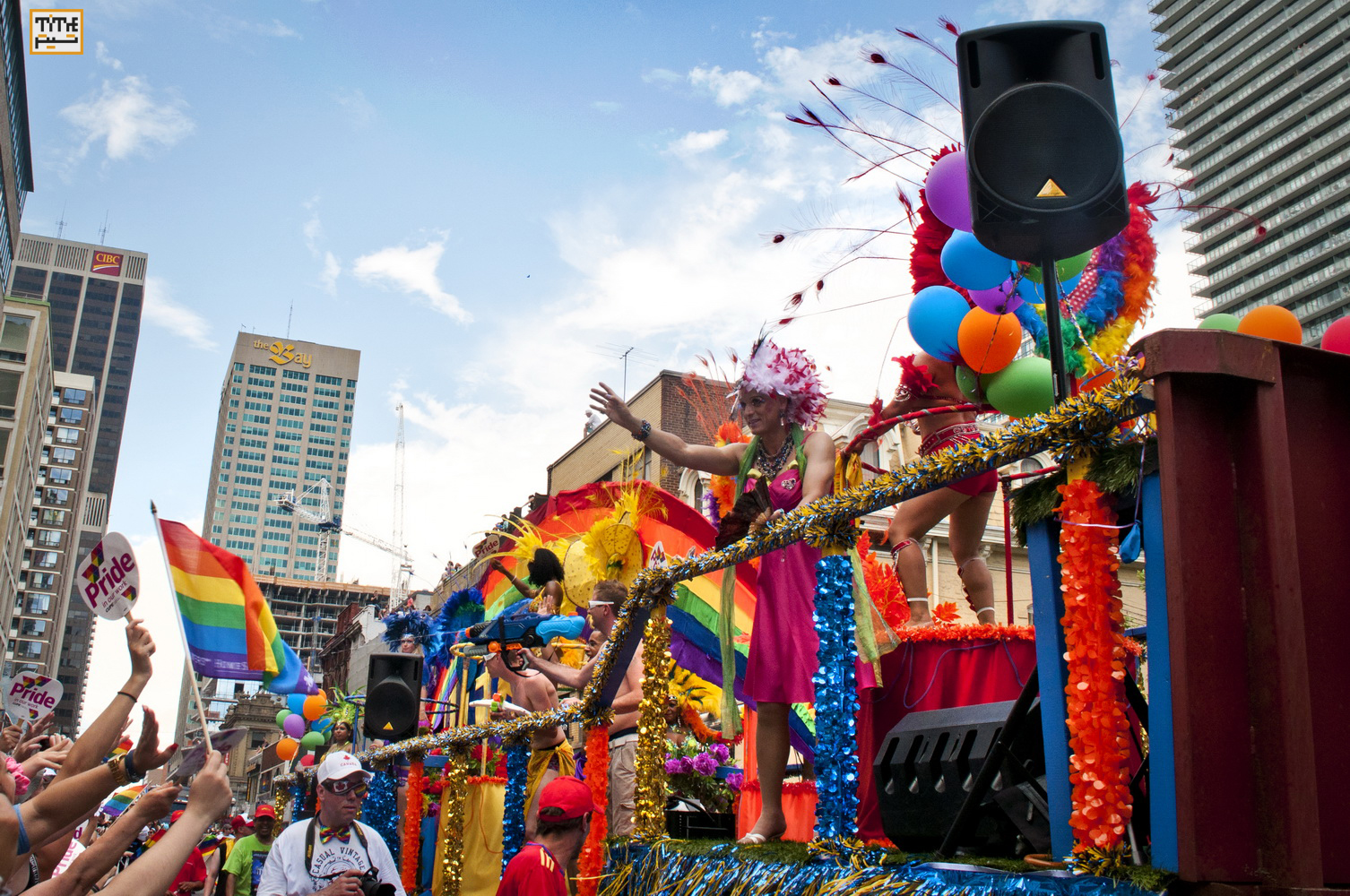 Gay Pride تورنتو، همه ساله با بالا بردن پرچم شش رنگ رنگین کمان در مقابل ساختمان شهرداری برگزار می شود. امسال یکی از حمل کنندگان این پرچم Gilbert Baker بود، کسی که 36 سال پیش به پیشنهاد Harvey Bernard Milk پرچم را طراحی کرد.