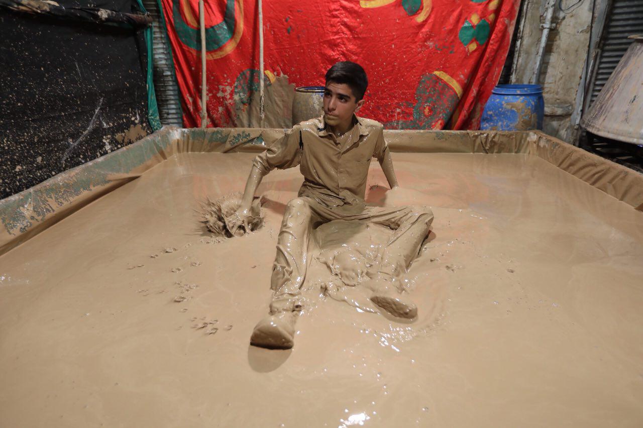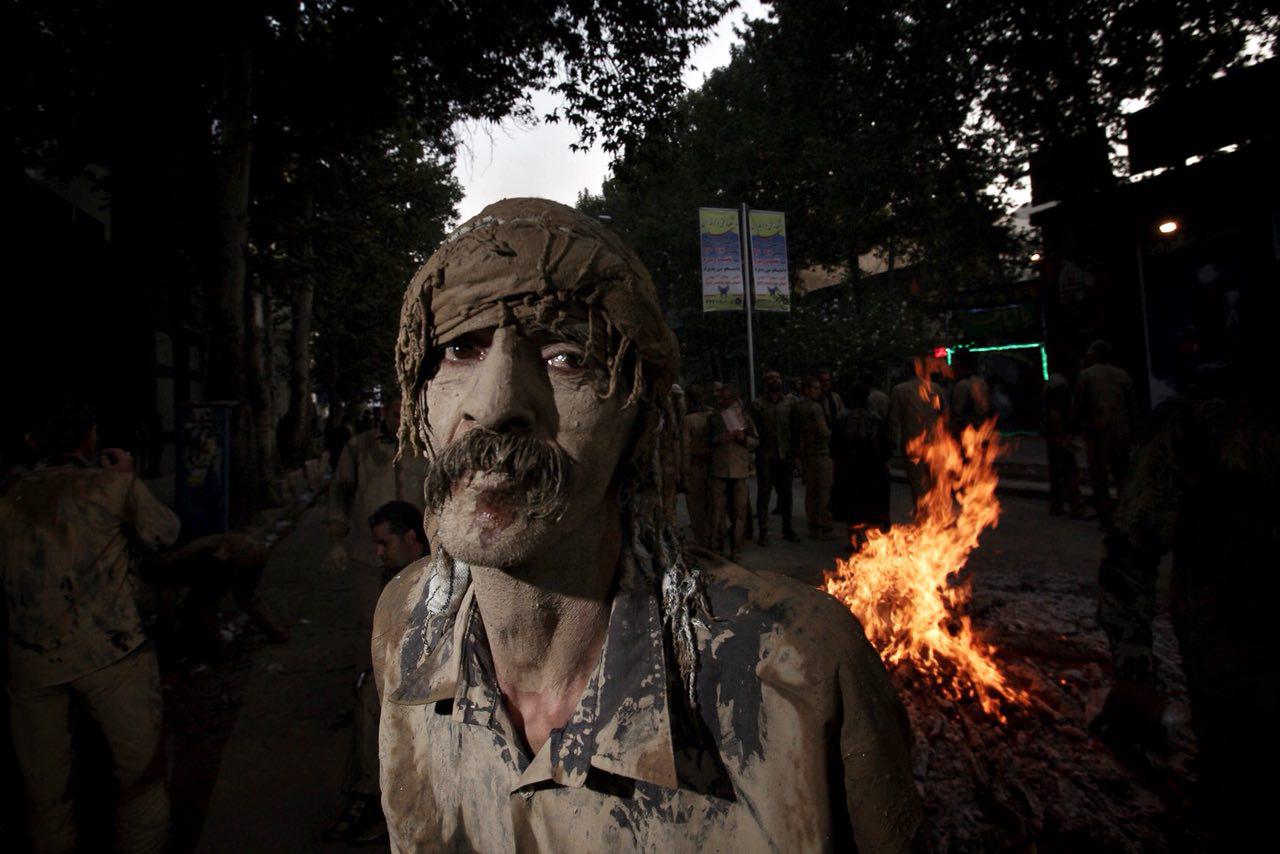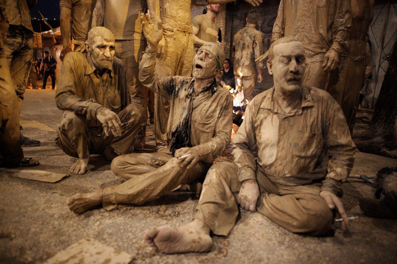 Kharrah mali, or ‘mud rubbing’, is a ritual that is held in Iranian city of Khorramabad every year to commemorate the death of the prophet Muhammad’s grandson Hussein ibn Ali in AD680 (AH61 in the Islamic calendar). Shia Muslims roll over in mud and dry themselves by gathering around the bonfires before flagellating themselves