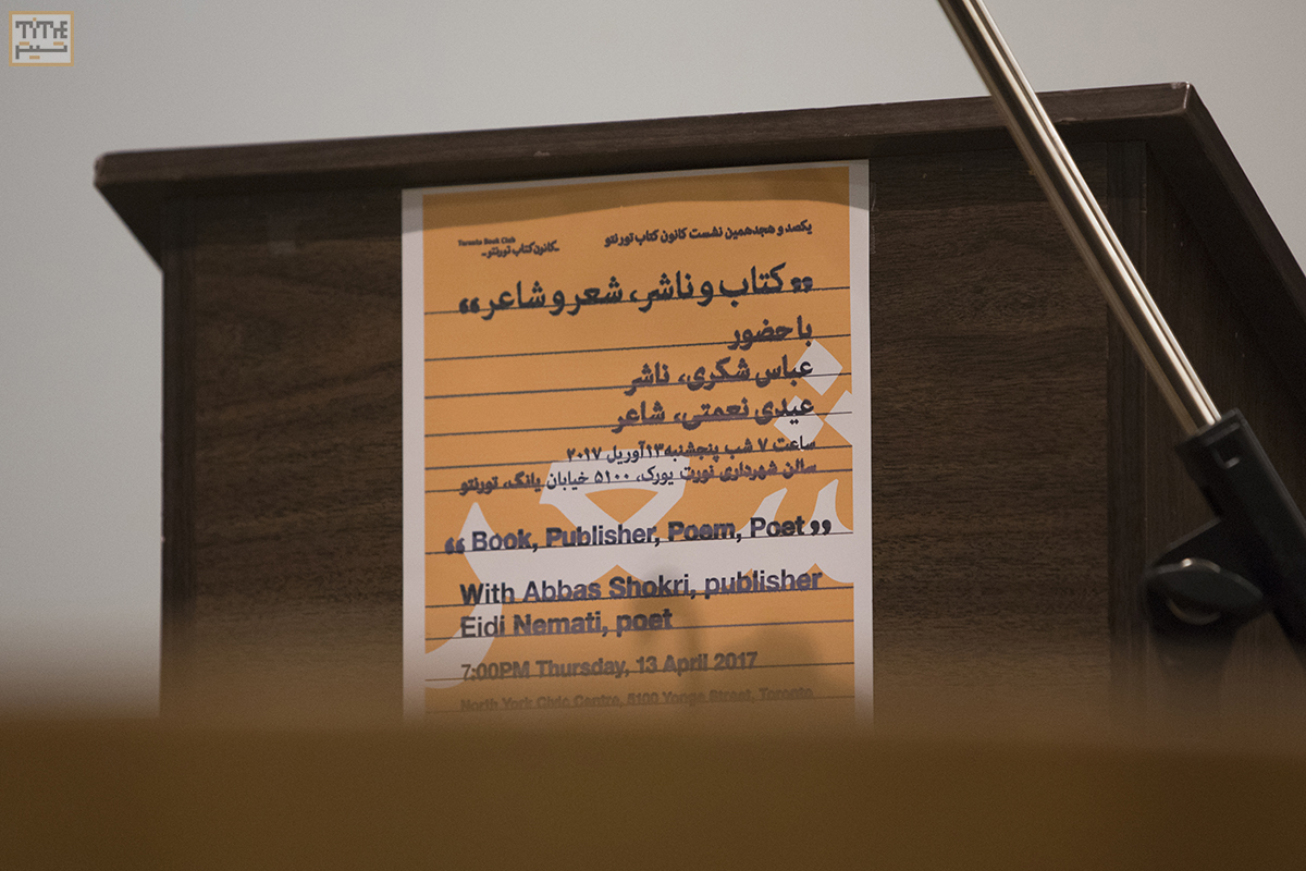در یکصد و هجدهمین نشست کانون کتاب تورنتو، عیدی نعمتی، شاعر ساکن تورنتو برای شرکت کنندگان مجموعه ای از شعرهای کتاب جدید و بخشی از شعرهای قدیمی خود را خواند و در پایان به سوالات علاقمندان پاسخ داد. از سوی دیگر تورنتو میزبان آقای عباس شکری بود که در رابطه با نشر کتاب به زبان فارسی در خارج از ایران توضیحات کاملی داد و درباره اشکالات ترجمه در داخل ایران نیز نمونه هایی را معرفی کرد. این جلسه که در سالن همایش های شهرداری نورت یورک برگزار میشد، ۲ ساعت به طول انجامید.