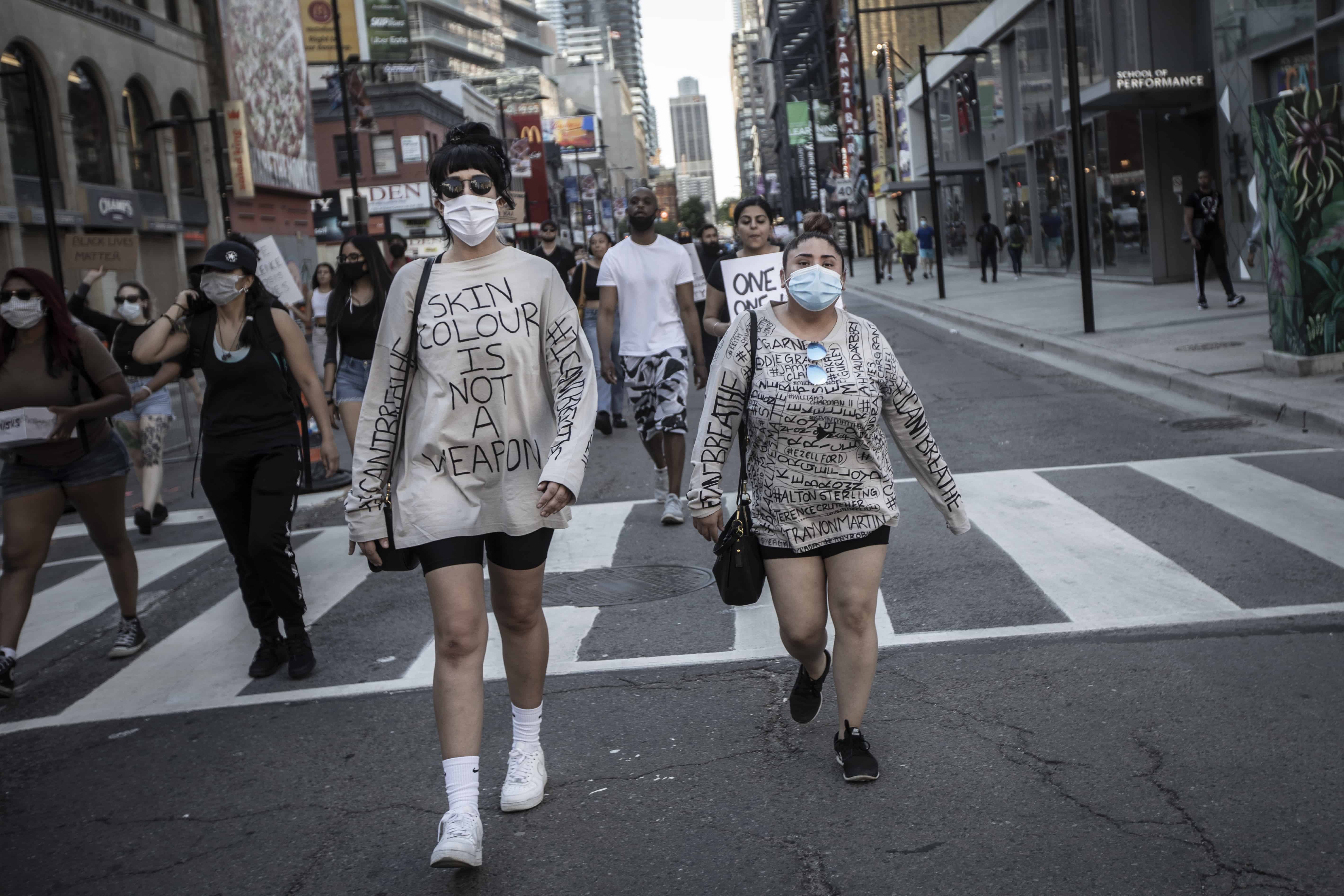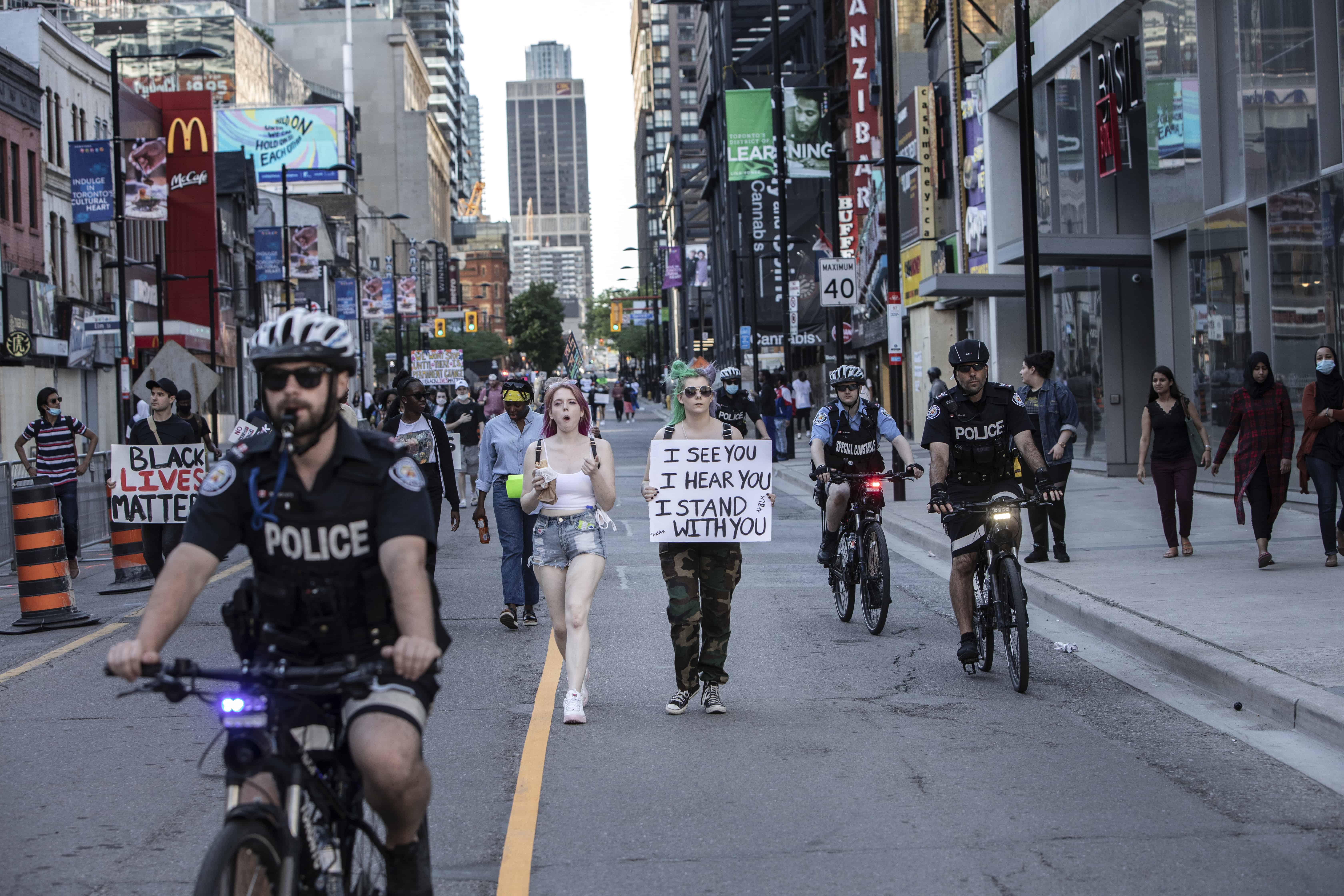 روز یکشنبه بعد از ظهر به یکی از میادین اصلی شهر رفتیم. تظاهرکنندگان از خیابان اصلی – یانگ – به سمت میدان در حرکت بودند. سفید و سیاه، پیر و جوان از هر نژاد و رنگ پوستی آمده بودند. بعضی پلاکارد در دست داشتند. بعضی دیگر شعارهایی را که دختر سیاهپوستی از پشت بلندگو سر میداد، تکرار می کردند. خیابان را بسته بودند و پلیس تورنتو با دوچرخه و اسب مراقب بود تا امنیت تظاهرکنندگان تامین شود. با تجربه ای که از تظاهرات ایران داشتم، ناخودآگاه تمام حواسم به پلیس بود و از پشت عینک آفتابی نگاهشان می کردم، نمی دانم چرا منتظر درگیری بودم. احساس می کردم تظاهرات آرام معنی ندارد و من باید آماده باشم تا اگر اتفاقی افتاد، بتوانم به موقع واکنش نشان دهم.