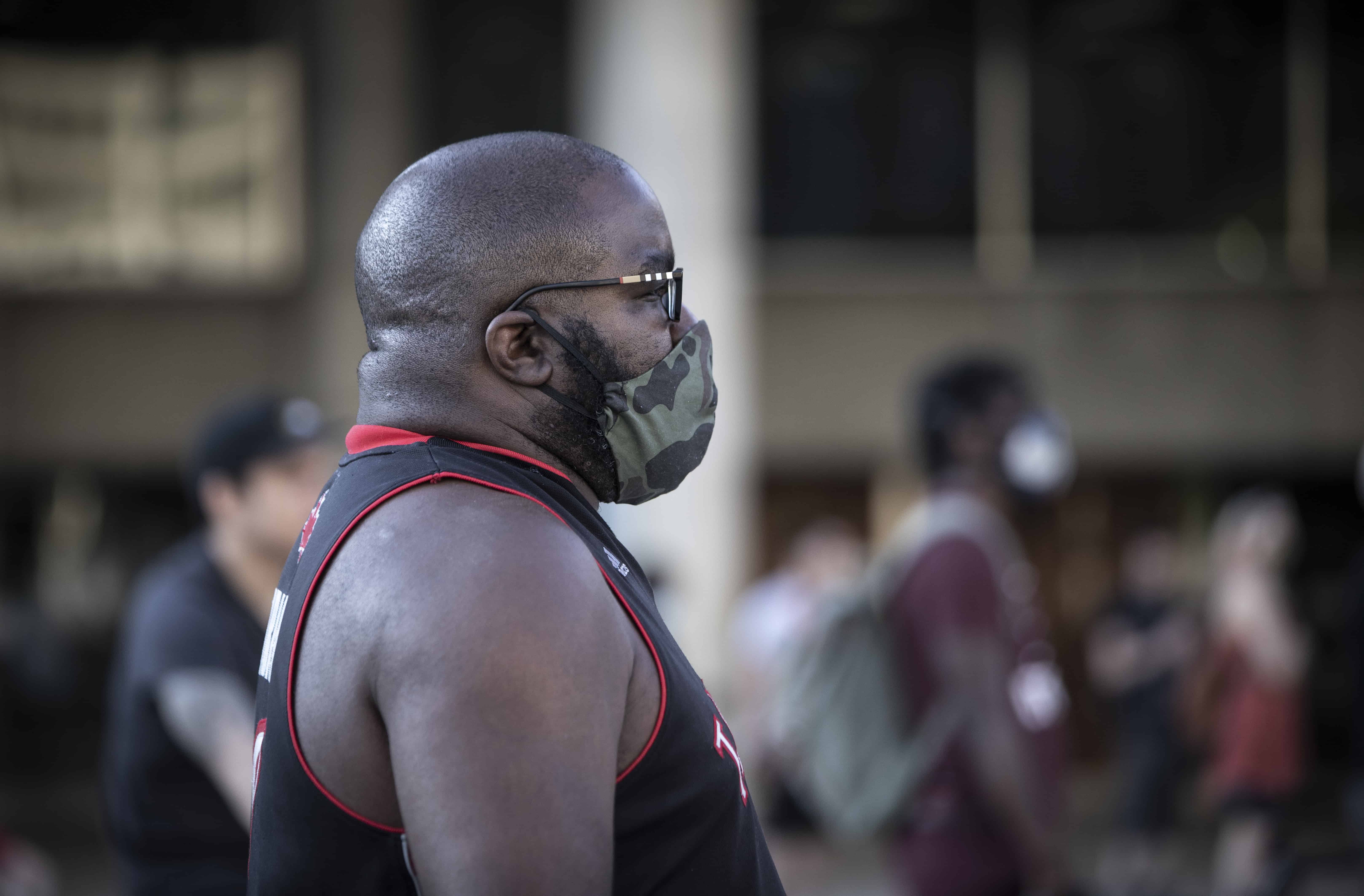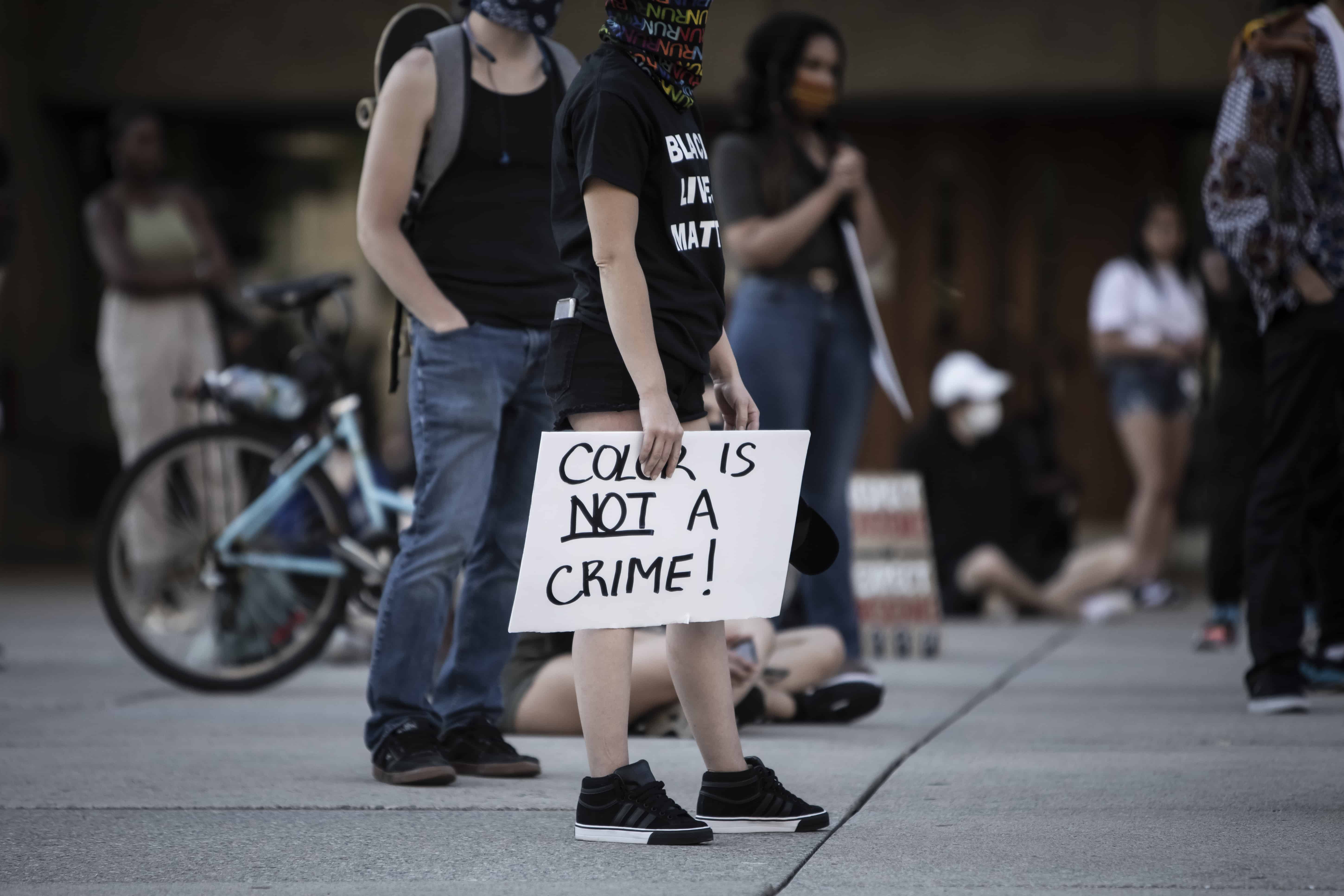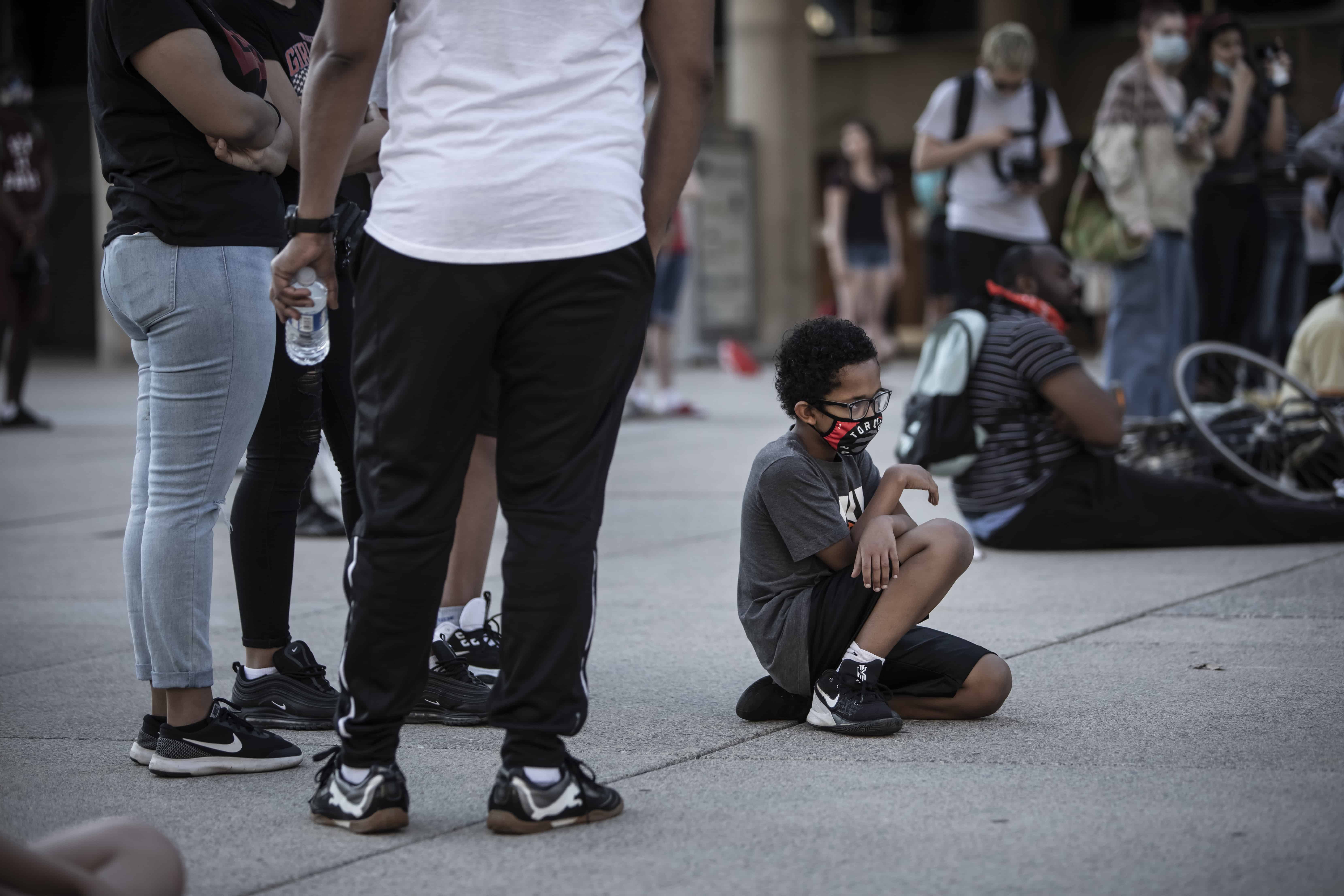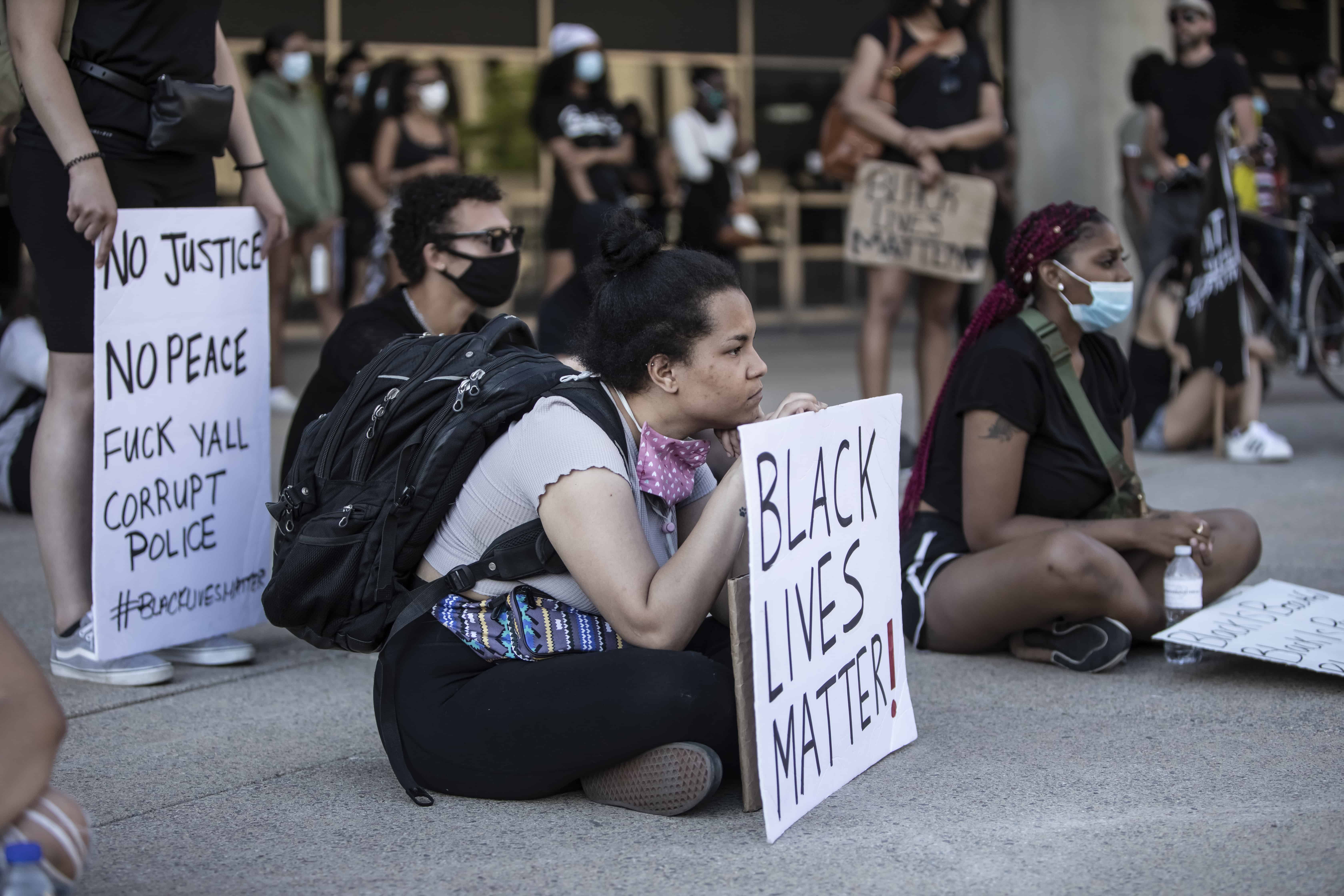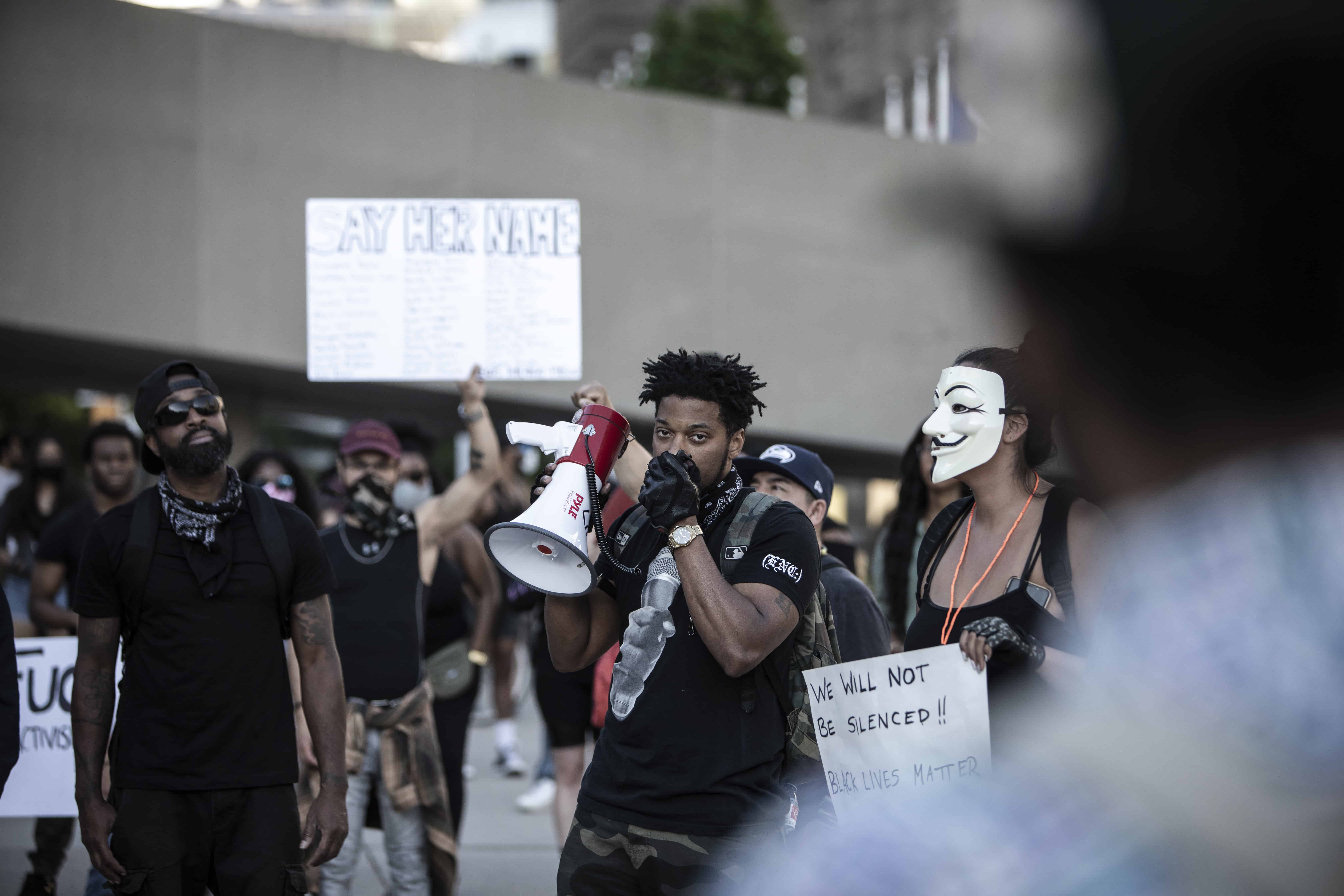 وقتی میدان – نیتن فیلیپس – رسیدیم، مرد سیاهپوستی از همه برای حضور و حمایتشان تشکر کرد. برای دقایقی همه از جمله پلیس زانو زدند و سکوت کردند. مرد جوان از مصائب سیاهپوست بودن حرف زد و تعریف کرد:«اگر شب تعطیلی من هم مانند خیلی دیگر از شماها برای تفریح بیرون بروم، وقتی پلیس را ببینم، حتا اگر کاری نکرده باشم و یا چیزی (مواد مخدر) در جیبم نداشته باشم، قلبم تندتند می زند، چرا که می دانم پلیس به خاطر رنگ پوستم قطعا به سراغ من می آید و سوال پیچم می کند.»