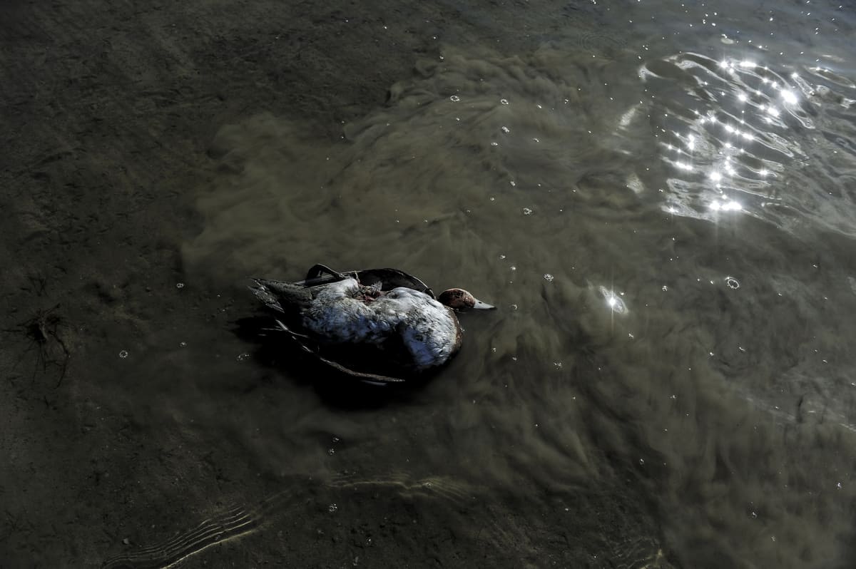 An immigrant duck killed by an unknown agent.On the Sixth day of monitoring, the number of dead migratory birds have reached 7,000, the carcasses were mostly from three bird species of Flamingo, coot and Northern shoveler.Photo By Mahdi Barchian / NVP Images