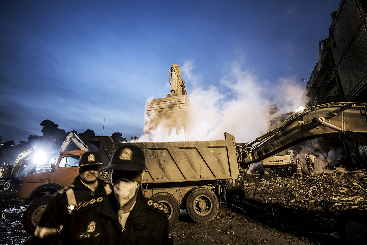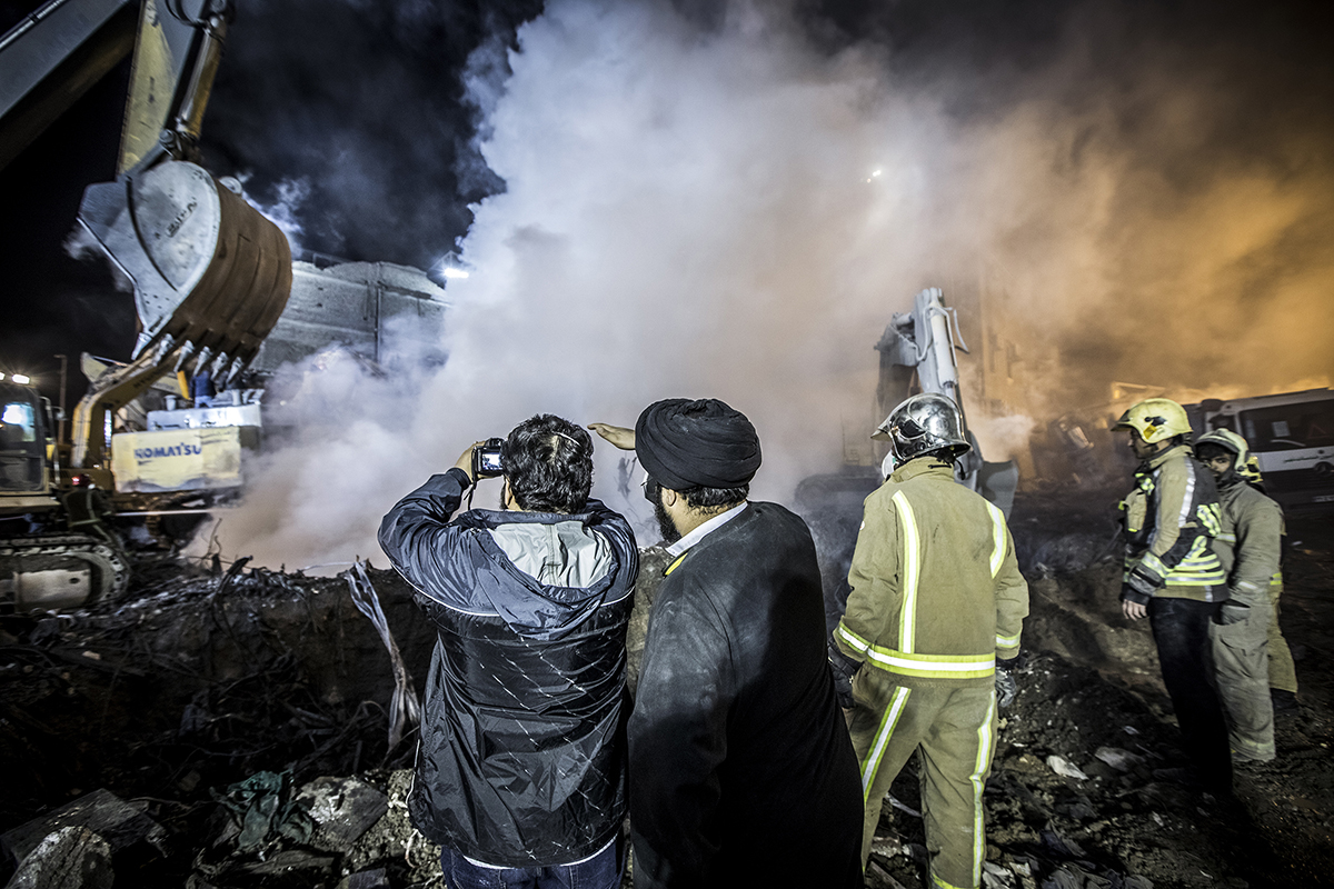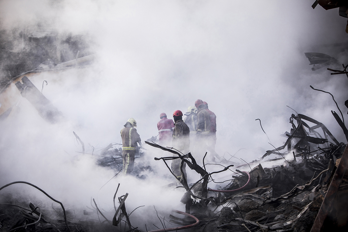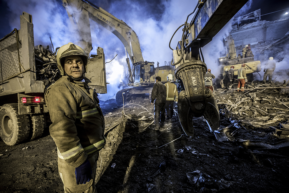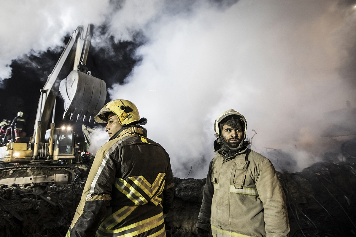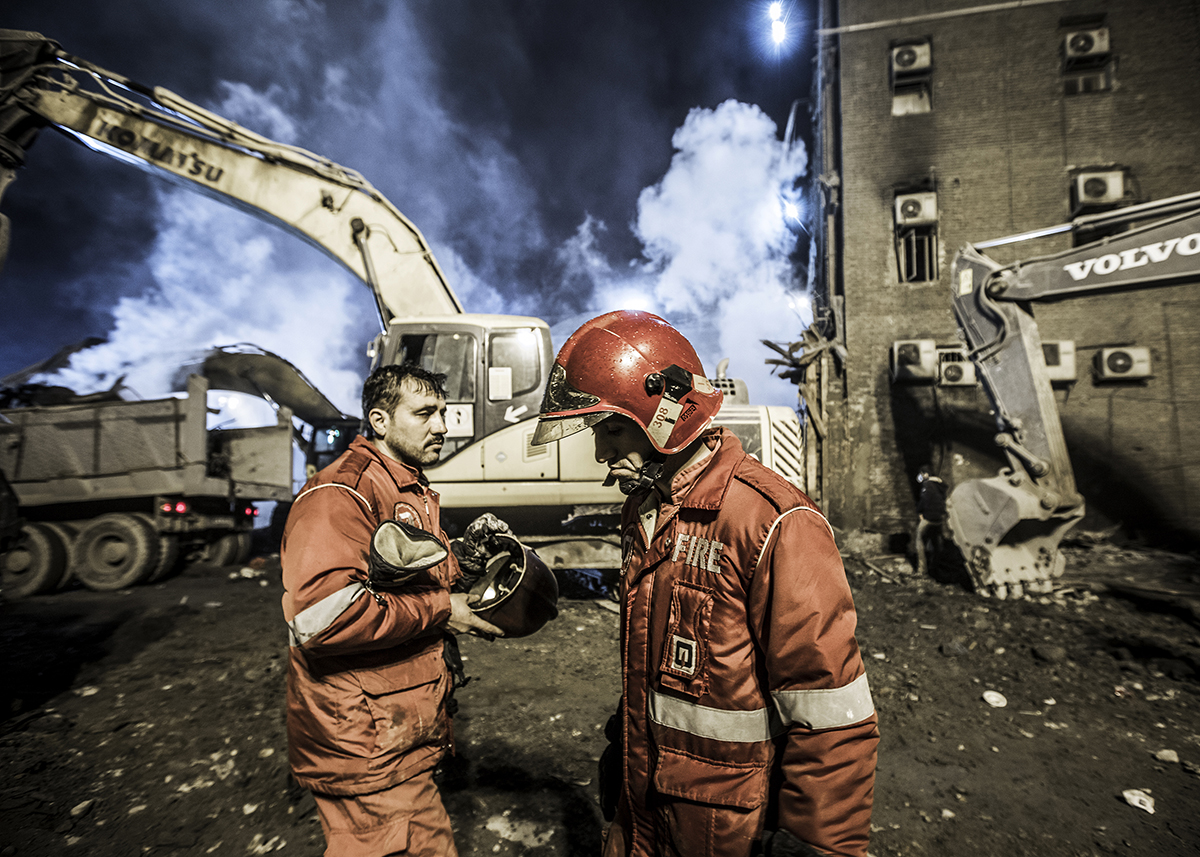 Volunteer firefighters arrived at the scene to help their colleagues to stop the fire and find the bodies. Extreme high temperature, the rotten smells and the scale of the disaster didn’t discourage the firefighters and they kept working 24/7 to find the bodies. 25/01/2017 - Tehran – Iran
