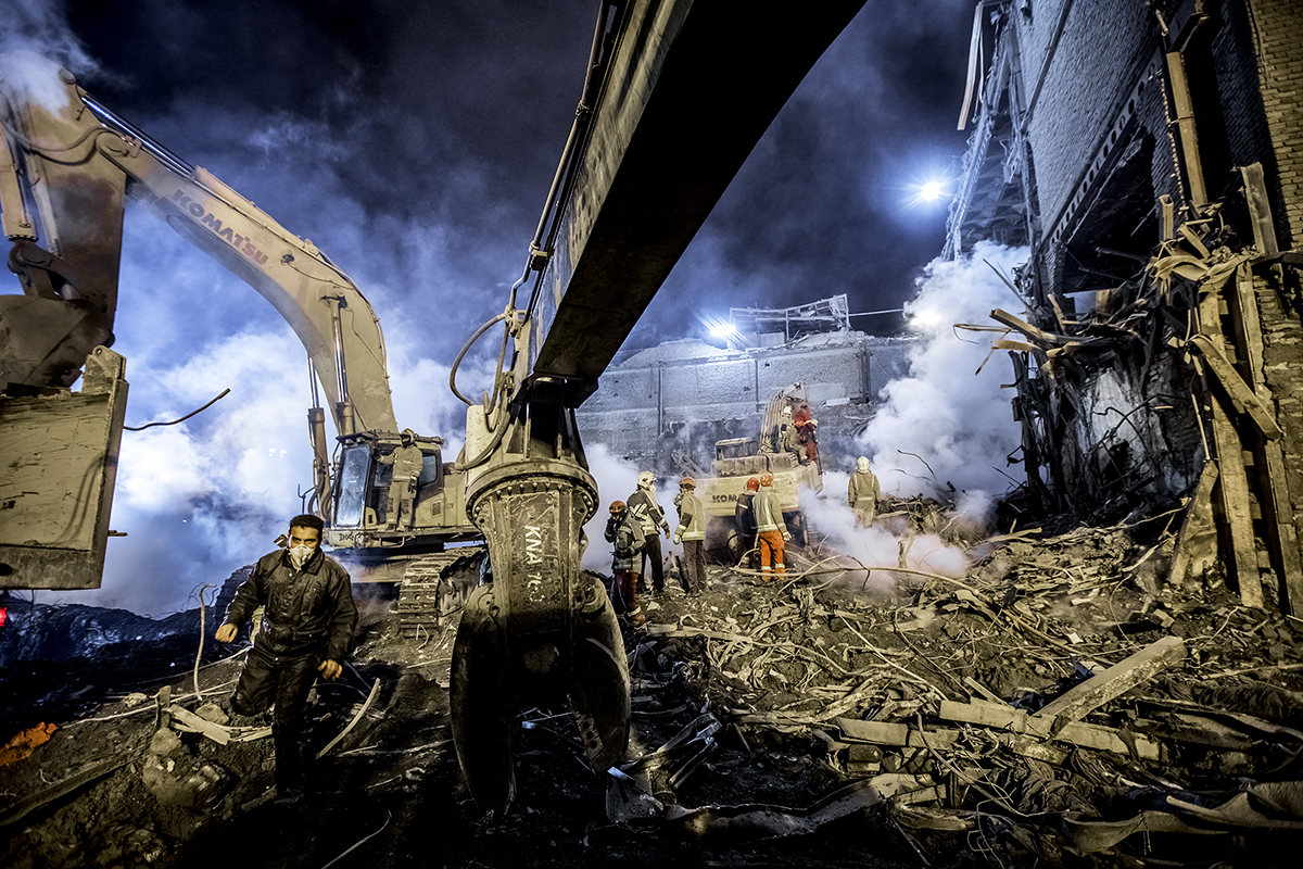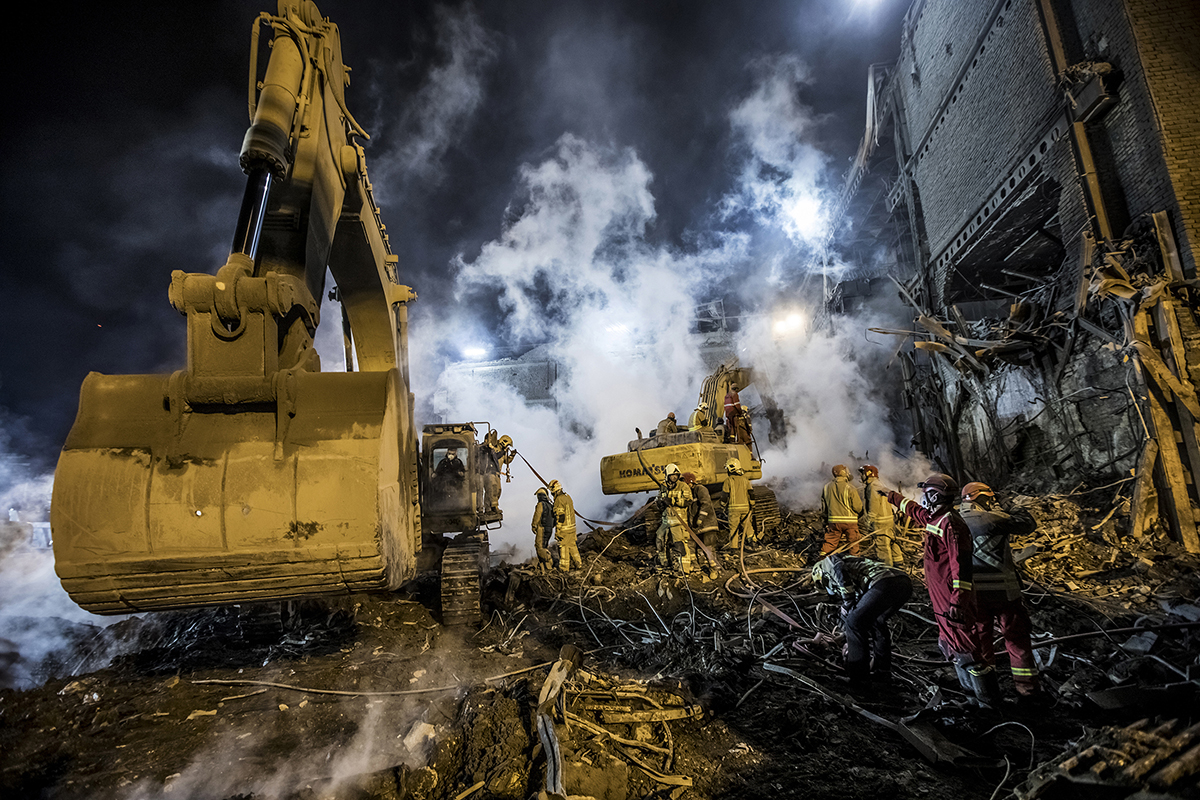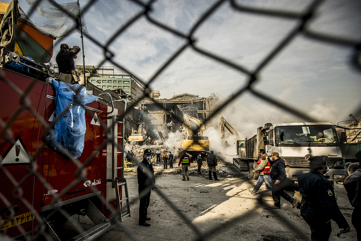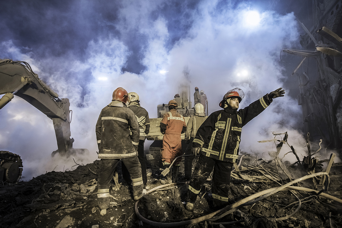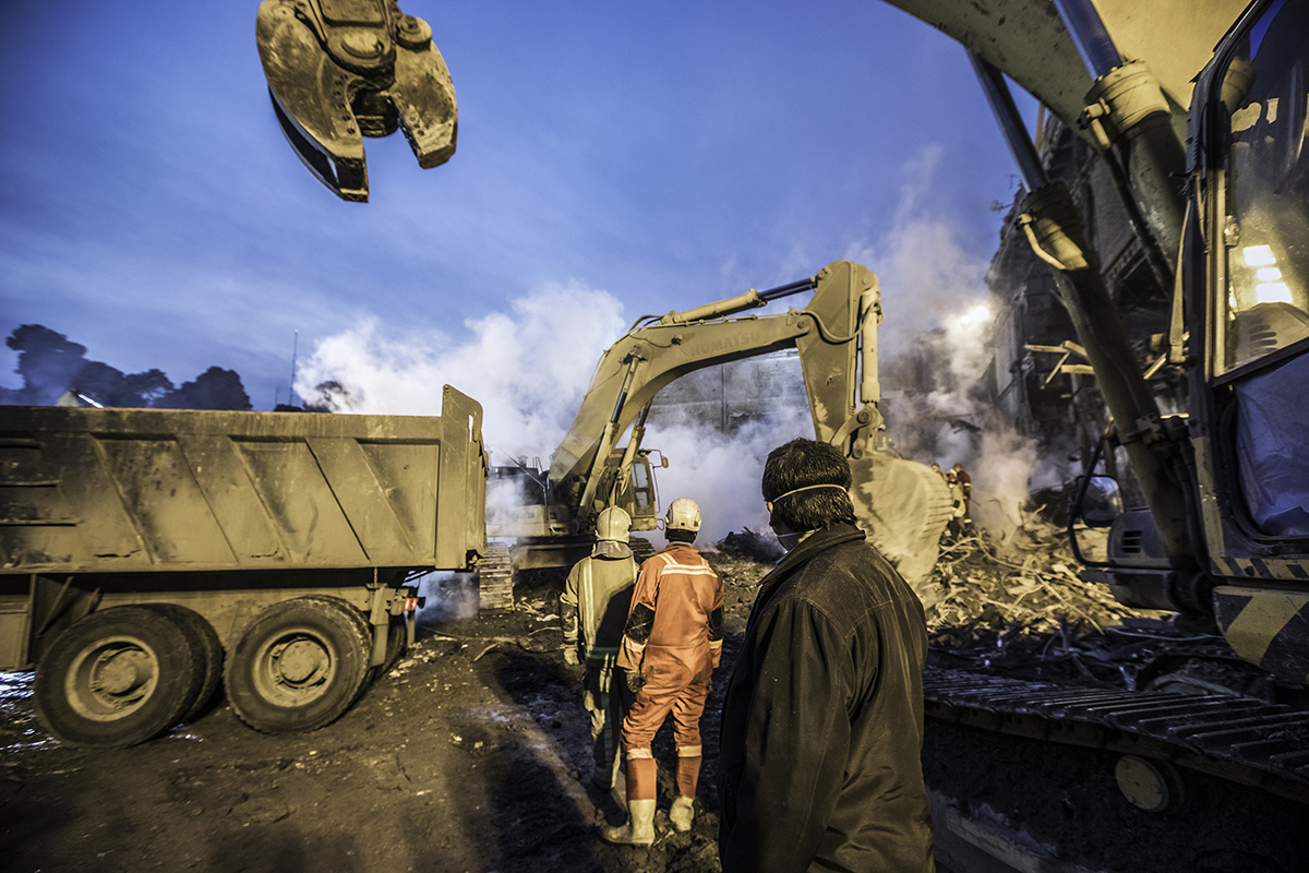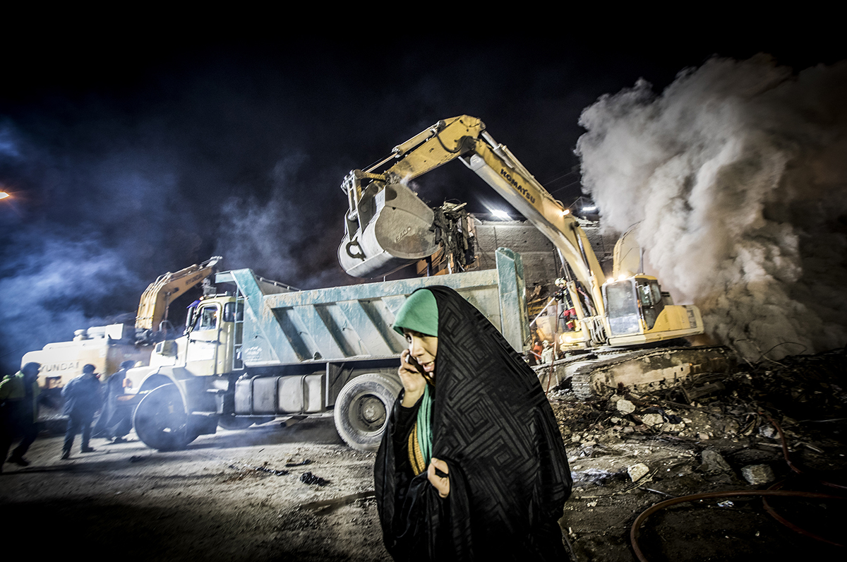 Volunteer firefighters arrived at the scene to help their colleagues to stop the fire and find the bodies. Extreme high temperature, the rotten smells and the scale of the disaster didn’t discourage the firefighters and they kept working 24/7 to find the bodies. 25/01/2017 - Tehran – Iran