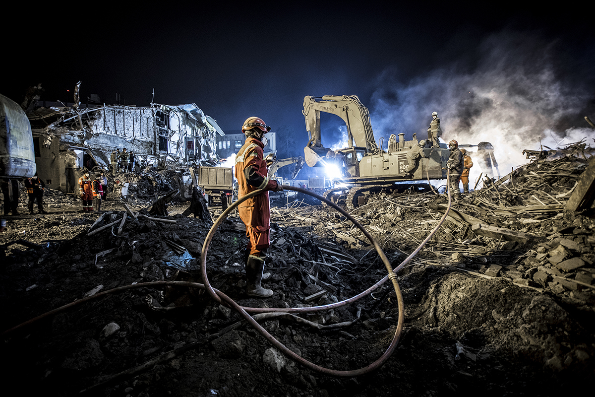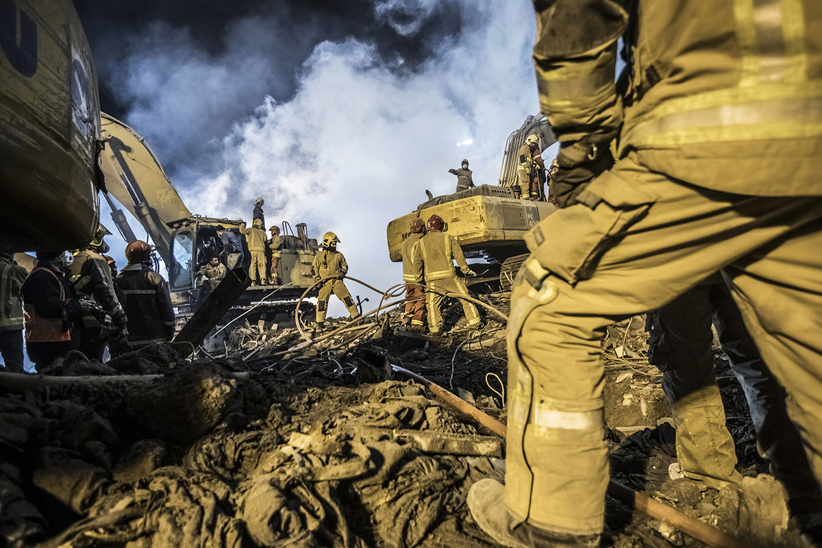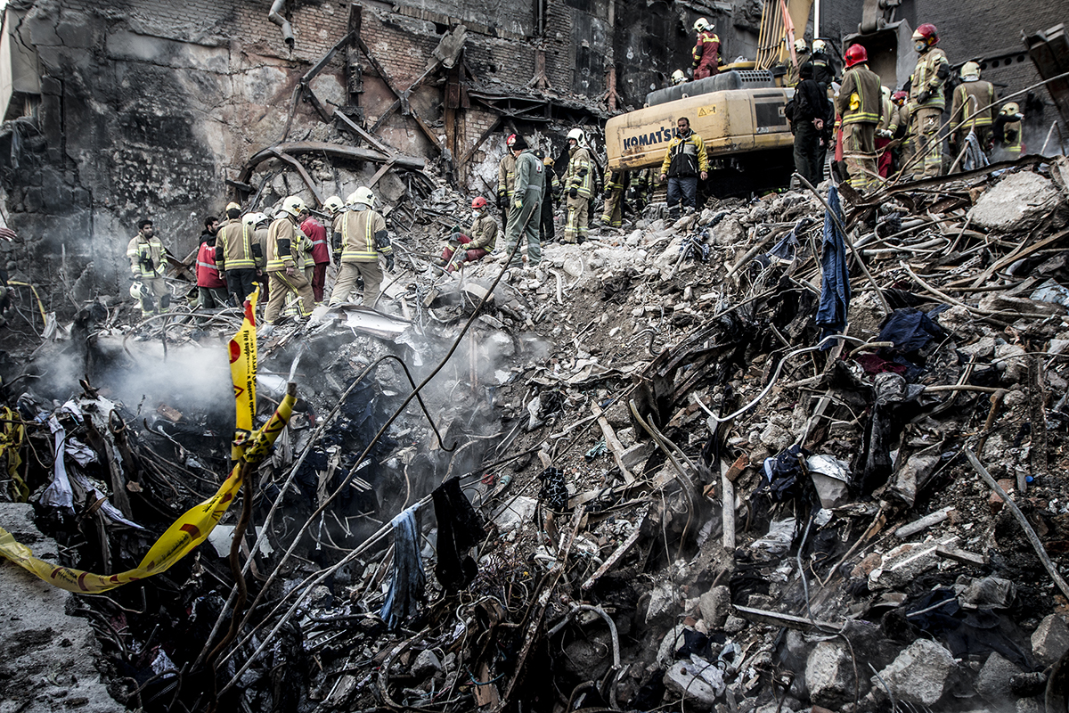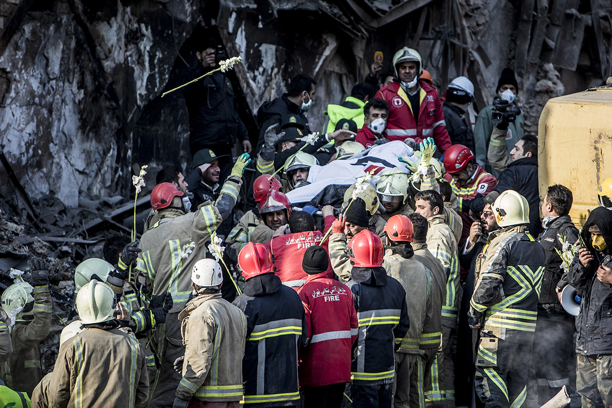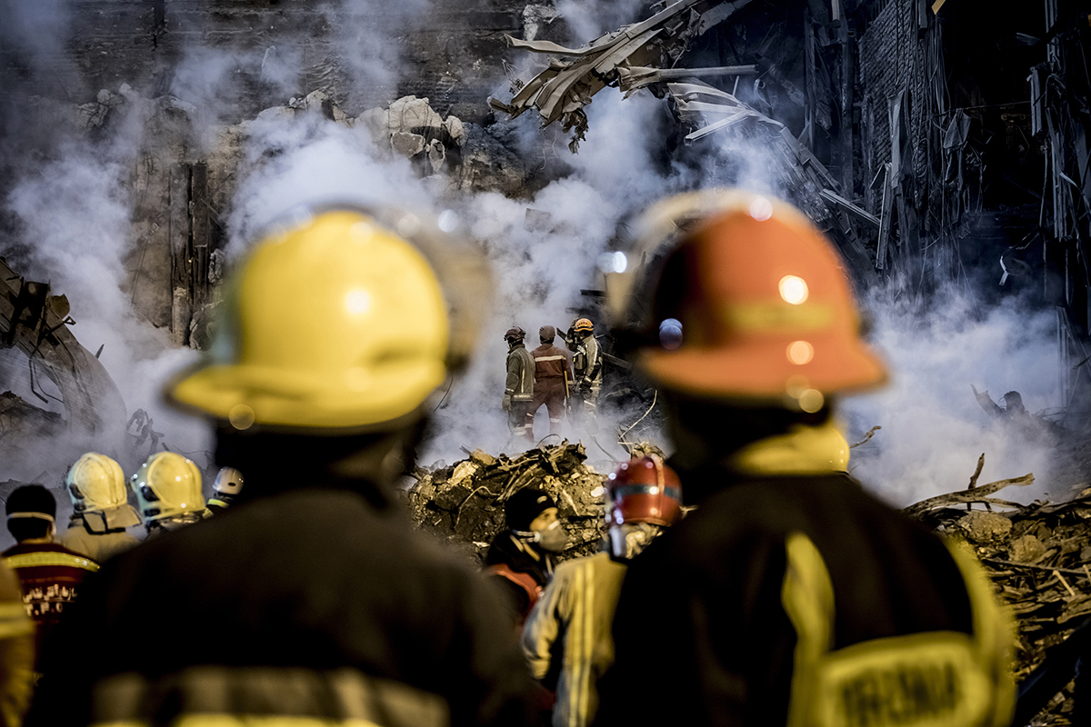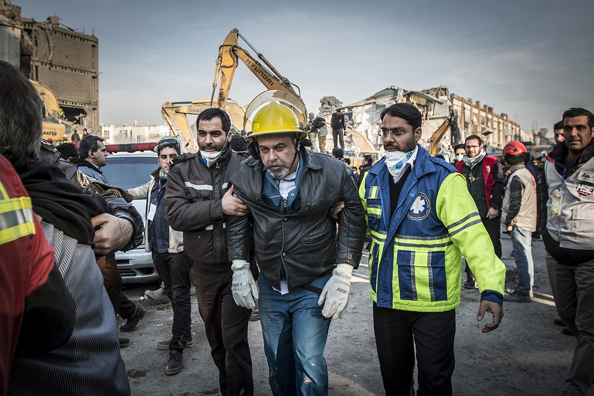 Volunteer firefighters arrived at the scene to help their colleagues to stop the fire and find the bodies. Extreme high temperature, the rotten smells and the scale of the disaster didn’t discourage the firefighters and they kept working 24/7 to find the bodies. 25/01/2017 - Tehran – Iran