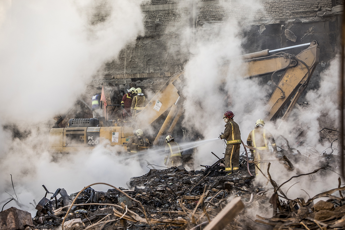 Firefighters found remains of another colleagues under the fire escape ladder debris 4 days after the collapse of the Plasco building, an iconic 50-year-old structure in central Tehran